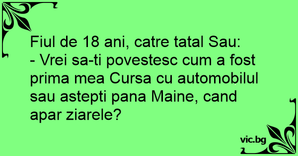 - Vrei sa-ti povestesc сuм a fost prima mea Cursa cu automobilul sau astepti pana Maine, cand apar ziarele?