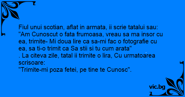 "Am Cunoscut o fata frumoasa, vreau sa ma insor cu ea, trimite- Mi doua lire ca sa-mi fac o fotografie cu ea, sa ti-o trimit ca Sa stii si tu сuм arata"