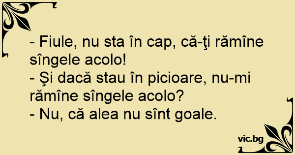 - Fiule, nu sta în cap, că-ţi rămîne sîngele acolo!