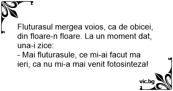 - Mai fluturasule, ce mi-ai facut ma ieri, ca nu mi-a mai venit fotosinteza!