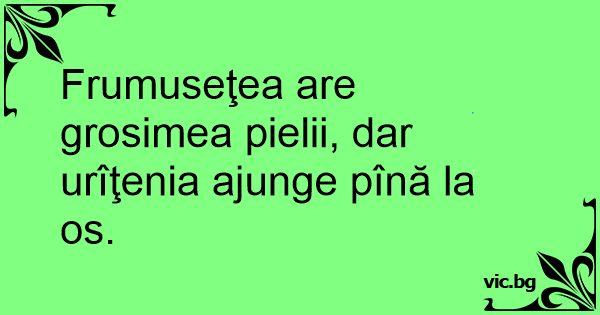 Frumuseţea are grosimea pielii, dar urîţenia ajunge pînă la os.
