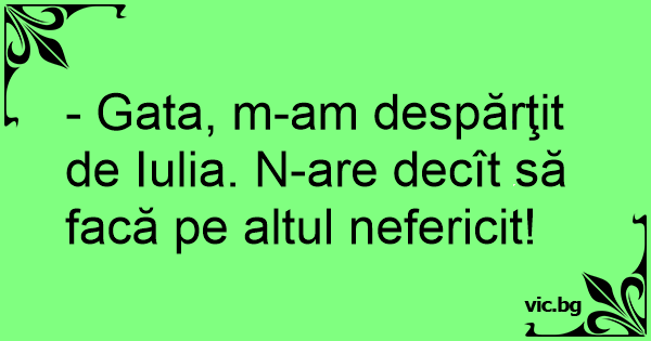 - Gata, m-am despărţit de Iulia. N-are decît să facă pe altul nefericit!