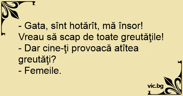 - Gata, sînt hotărît, mă însor! Vreau să scap de toate greutăţile!