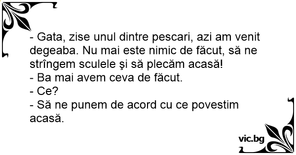 - Gata, zise unul dintre pescari, azi am venit degeaba. Nu mai este nimic de făcut, să ne strîngem sculele şi să plecăm acasă!