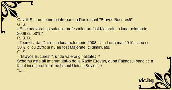 Gavriil Stiharul pune o intrebare la Radio sant "Bravos Bucuresti" :