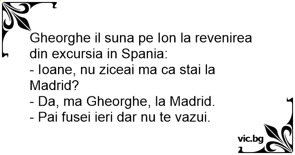 - Ioane, nu ziceai ma ca stai la Madrid?