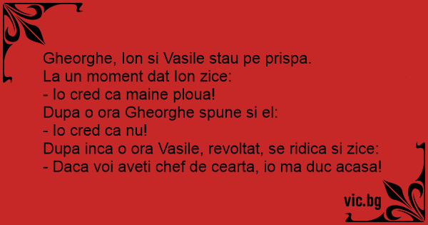 Dupa inca o ora Vasile, revoltat, se ridica si zice: