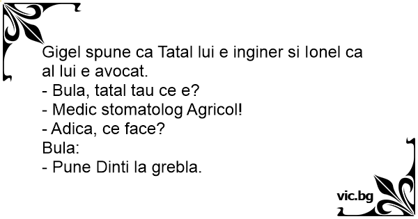 Gigel spune ca Tatal lui e inginer si Ionel ca al lui e avocat.