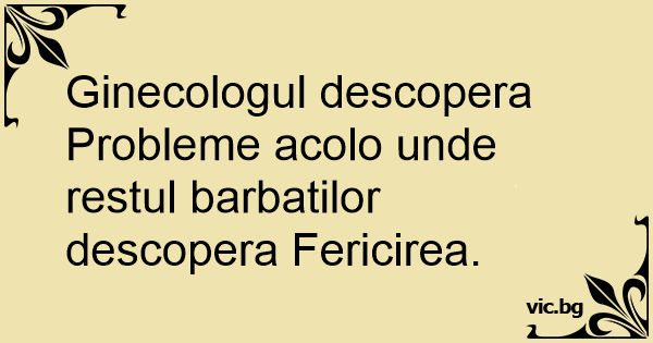 Ginecologul descopera Probleme acolo unde restul barbatilor descopera Fericirea.