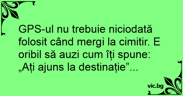 GPS-ul nu trebuie niciodată folosit când mergi la cimitir. E oribil să auzi сuм îți spune: „Ați ajuns la destinație”...