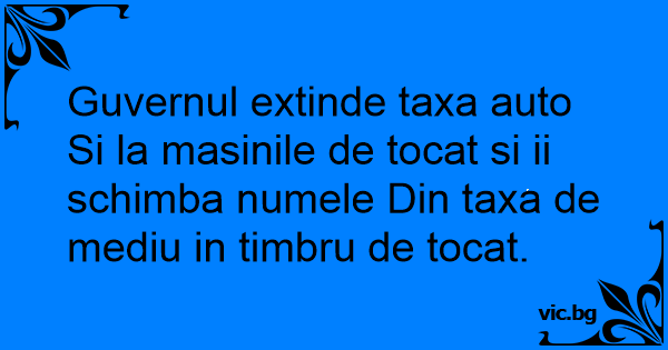 Guvernul extinde taxa auto Si la masinile de tocat si ii schimba numele Din taxa de mediu in timbru de tocat.