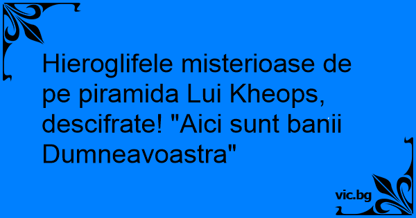 Hieroglifele misterioase de pe piramida Lui Kheops, descifrate! "Aici sunt banii Dumneavoastra"