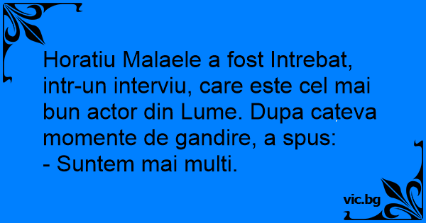 Horatiu Malaele a fost Intrebat, intr-un interviu, care este cel mai bun actor din Lume. Dupa cateva momente de gandire, a spus:
