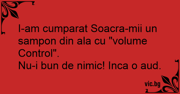 I-am cumparat Soacra-mii un sampon din ala cu "volume Control".