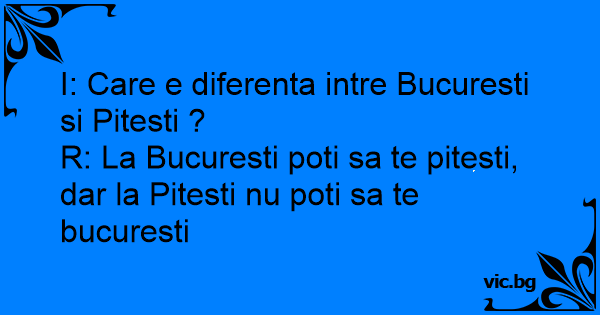I: Care e diferenta intre Bucuresti si Pitesti ?