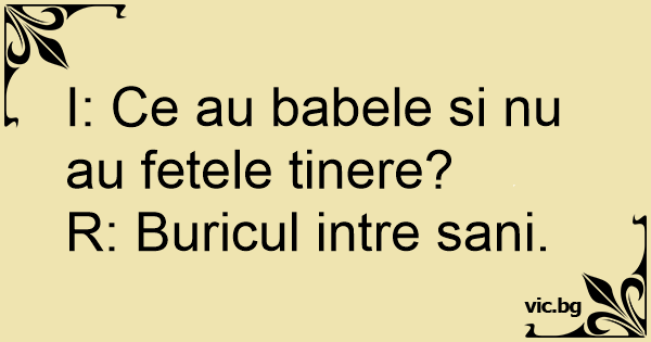 Какво има една 60 годишна жена между гърдите, което млада жена няма? - Пъп. Какво има една 80 годишна жена между гърдите, което една 60 годишна няма? - Косми