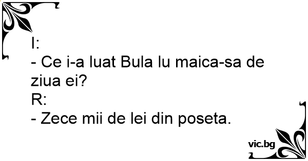 - Ce i-a luat Bula lu maica-sa de ziua ei?