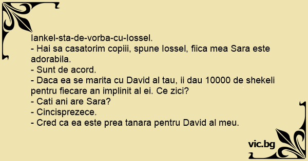 - Hai sa casatorim copiii, spune Iossel, fiica mea Sara este adorabila.