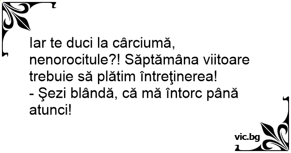 Iar te duci la cârciumă, nenorocitule?! Săptămâna viitoare trebuie să plătim întreţinerea!