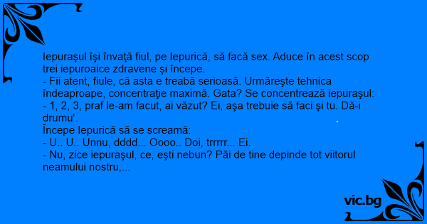 Iepuraşul îşi învaţă fiul, pe Iepurică, să facă sеx. Aduce în acest scop trei iepuroaice zdravene şi începe.