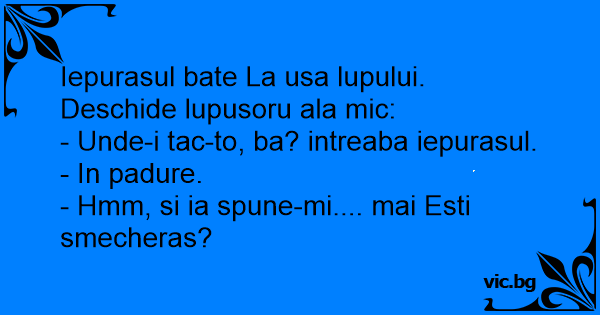 Iepurasul bate La usa lupului. Deschide lupusoru ala mic: