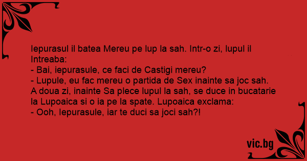Iepurasul il batea Mereu pe lup la sah. Intr-o zi, lupul il Intreaba: