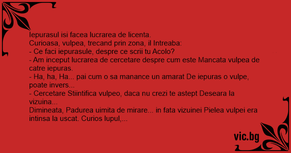 - Cercetare Stiintifica vulpeo, daca nu crezi te astept Deseara la vizuina...
