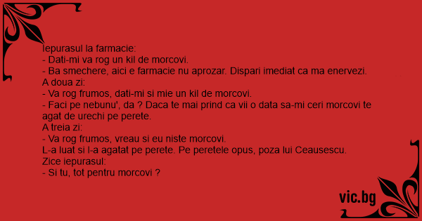 - Faci pe nebunu', da ? Daca te mai prind ca vii o data sa-mi ceri morcovi te agat de urechi pe perete.