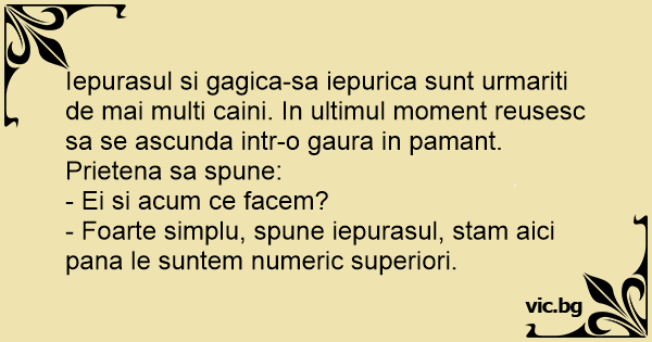 - Foarte simplu, spune iepurasul, stam aici pana le suntem numeric superiori.