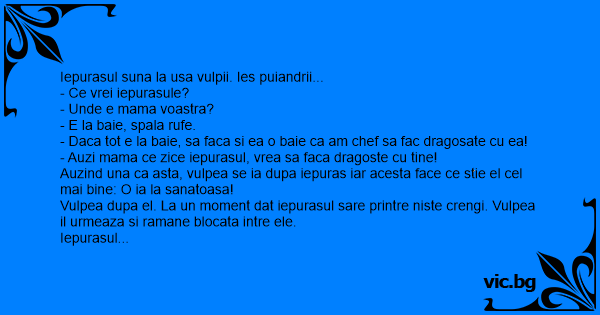- Auzi mama ce zice iepurasul, vrea sa faca dragoste cu tine!