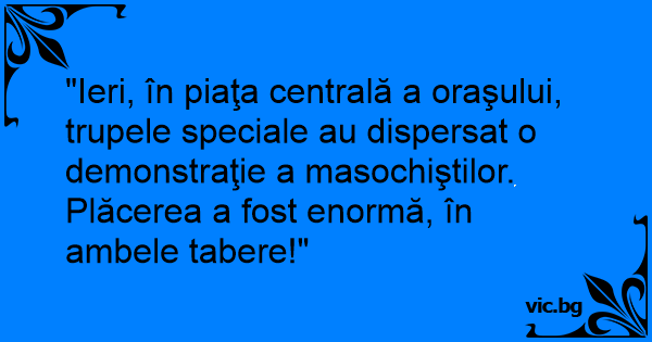 "Ieri, în piaţa centrală a oraşului, trupele speciale au dispersat o demonstraţie a masochiştilor. Plăcerea a fost enormă, în ambele tabere!"