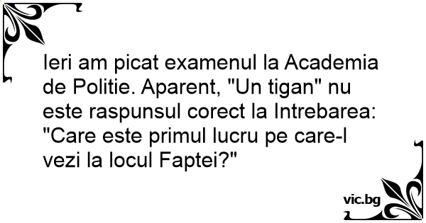 Ieri am picat examenul la Academia de Politie. Aparent, "Un tigan" nu este raspunsul corect la Intrebarea: