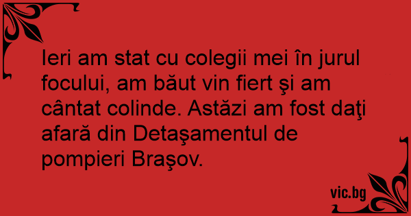 Ieri am stat cu colegii mei în jurul focului, am băut vin fiert şi am cântat colinde. Astăzi am fost daţi afară din Detaşamentul de pompieri Braşov.