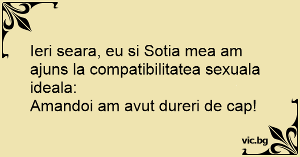Ieri seara, eu si Sotia mea am ajuns la compatibilitatea sexuala ideala: