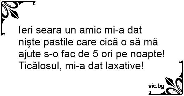Ieri seara un amic mi-a dat nişte pastile care cică o să mă ajute s-o fac de 5 ori pe noapte!