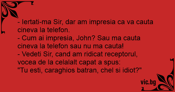 - Vedeti Sir, cand am ridicat receptorul, vocea de la celalalt capat a spus: