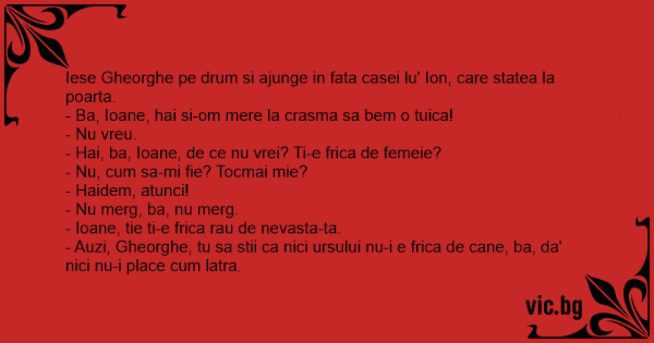 - Ioane, tie ti-e frica rau de nevasta-ta.