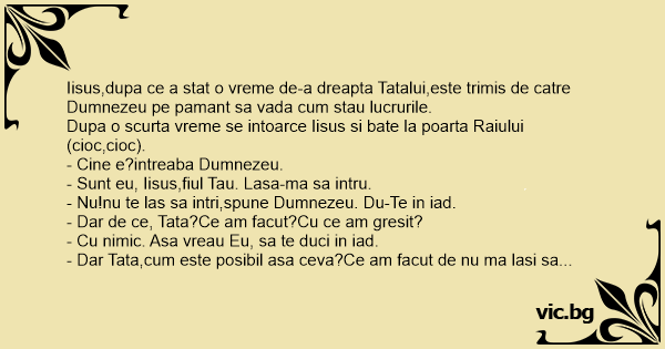 - Nu!nu te las sa intri,spune Dumnezeu. Du-Te in iad.