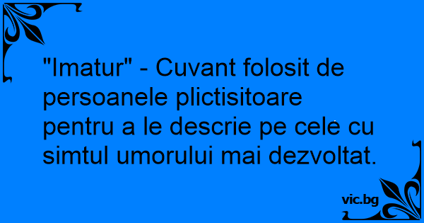 "Imatur" - Cuvant folosit de persoanele plictisitoare pentru a le descrie pe cele cu simtul umorului mai dezvoltat.