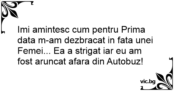 Imi amintesc сuм pentru Prima data m-am dezbracat in fata unei Femei... Ea a strigat iar eu am fost aruncat afara din Autobuz!