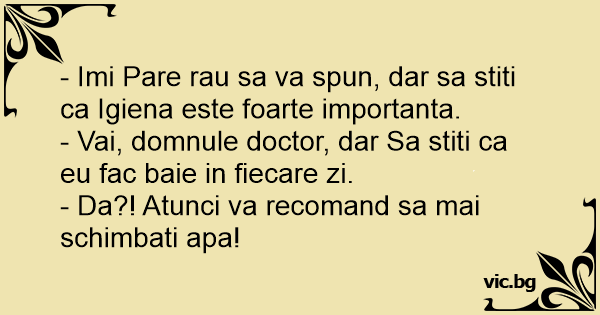 - Vai, domnule doctor, dar Sa stiti ca eu fac baie in fiecare zi.