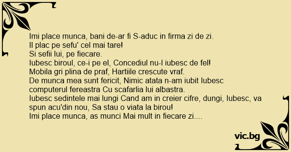 Imi place munca, as munci Mai mult in fiecare zi.