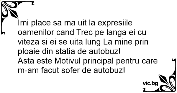 Imi place sa ma uit la expresiile oamenilor cand Trec pe langa ei cu viteza si ei se uita lung La mine prin ploaie din statia de autobuz!