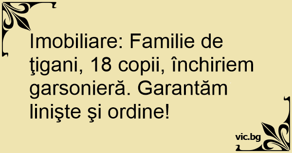 Imobiliare: Familie de ţigani, 18 copii, închiriem garsonieră. Garantăm linişte şi ordine!