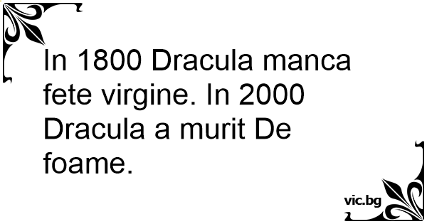 In 1800 Dracula manca fete virgine. In 2000 Dracula a murit De foame.