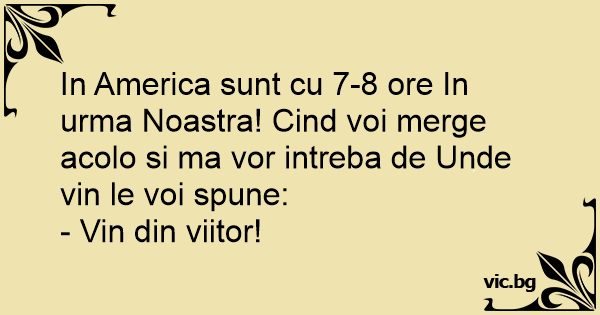 In America sunt cu 7-8 ore In urma Noastra! Cind voi merge acolo si ma vor intreba de Unde vin le voi spune: