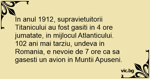 In anul 1912, supravietuitorii Titanicului au fost gasiti in 4 ore jumatate, in mijlocul Atlanticului.