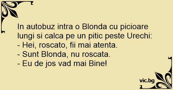 In autobuz intra o Blonda cu picioare lungi si calca pe un pitic peste Urechi:
