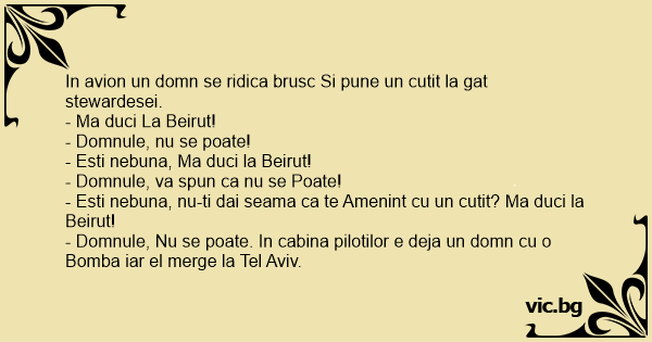 - Domnule, Nu se poate. In cabina pilotilor e deja un domn cu o Bomba iar el merge la Tel Aviv.