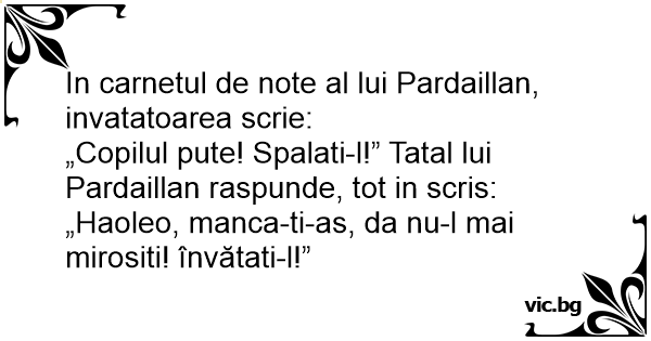 In carnetul de note al lui Pardaillan, invatatoarea scrie: